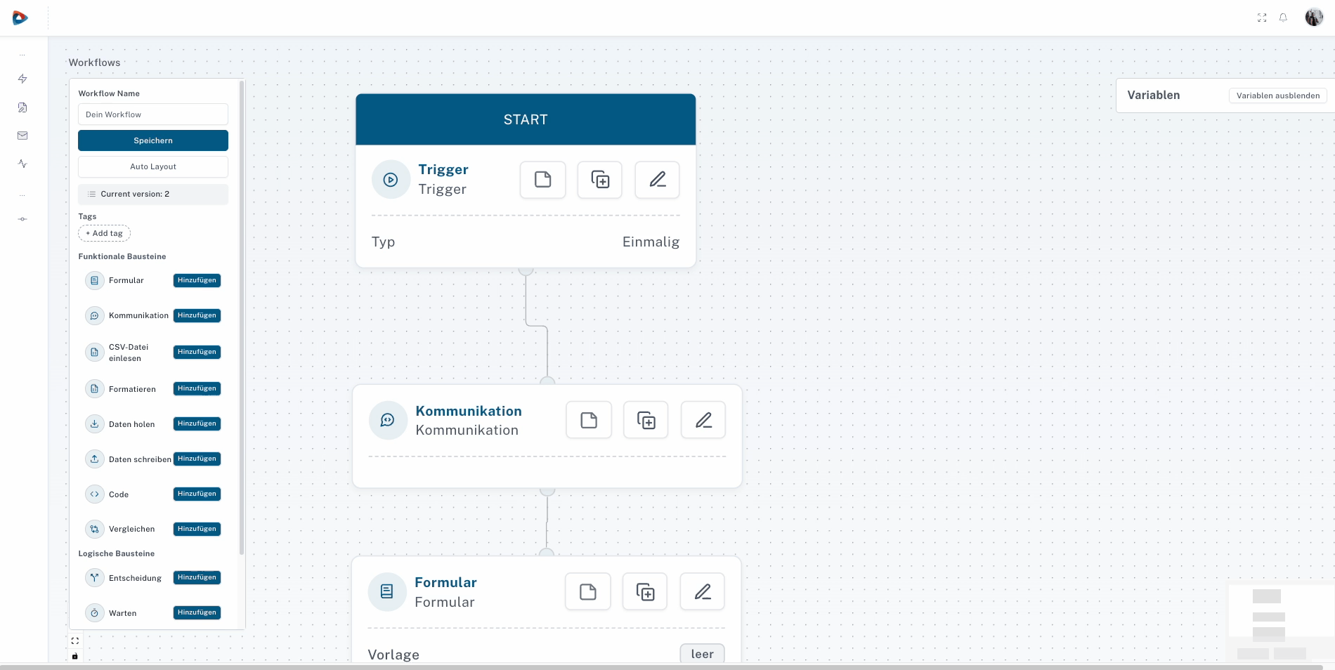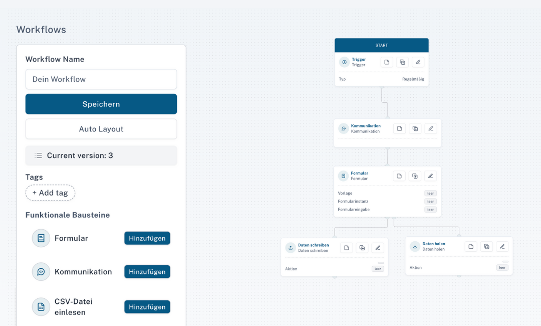 Erstellen Sie individuelle Formulare direkt im Workflow – für Abfragen, Genehmigungen oder Dateneingaben. Alle Antworten fließen automatisch in den Prozess ein.